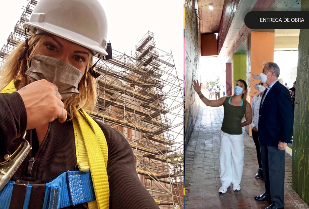 She also carried out the artistic intervention of the columns of the Government Palace, in coordination with the Culture Department, and led training workshops for the Neighborhood Commune, strengthening the integration of art with citizens and their territory.